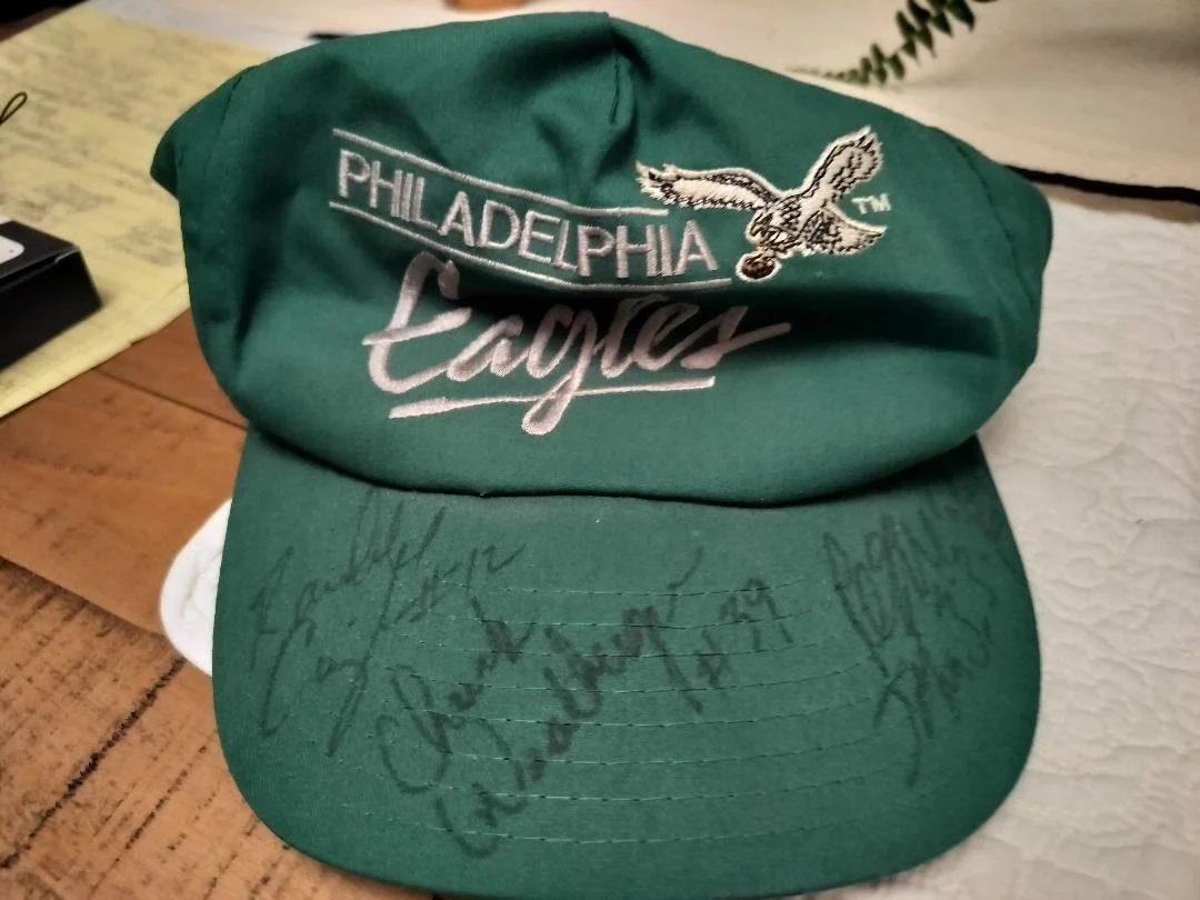 All of this is tied to a lynchpin of being in the Wheatsheaf pub in 1991. We’d just been to see the Eagles and Bills practice at Crystal Palace, on the week running up to the pre-season American Bowl game. One consequence of that trip is that I now have what might seem like the oddest piece of sports memorabilia, in the shape of a Philadelphia Eagles cap that is signed on one side of the peak of the cap by Randal Cunningham and on the other side it’s signed by Reggie White (Complete with Bible reference after his signature). And in the middle? Yep. Check Weatherspoon. To which, any football fan, before reading this, would say, “Who the hell is Chuck Weatherspoon?”